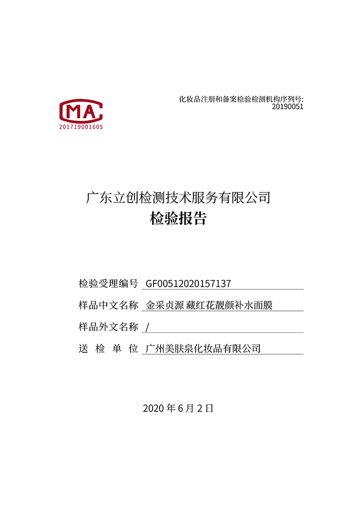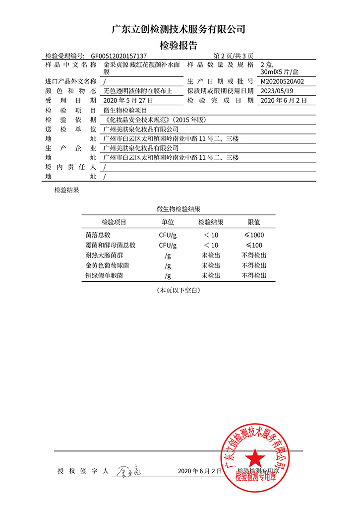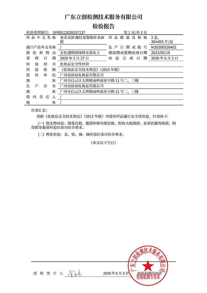 藏紅花深層修護(hù)面膜檢驗(yàn)報(bào)告